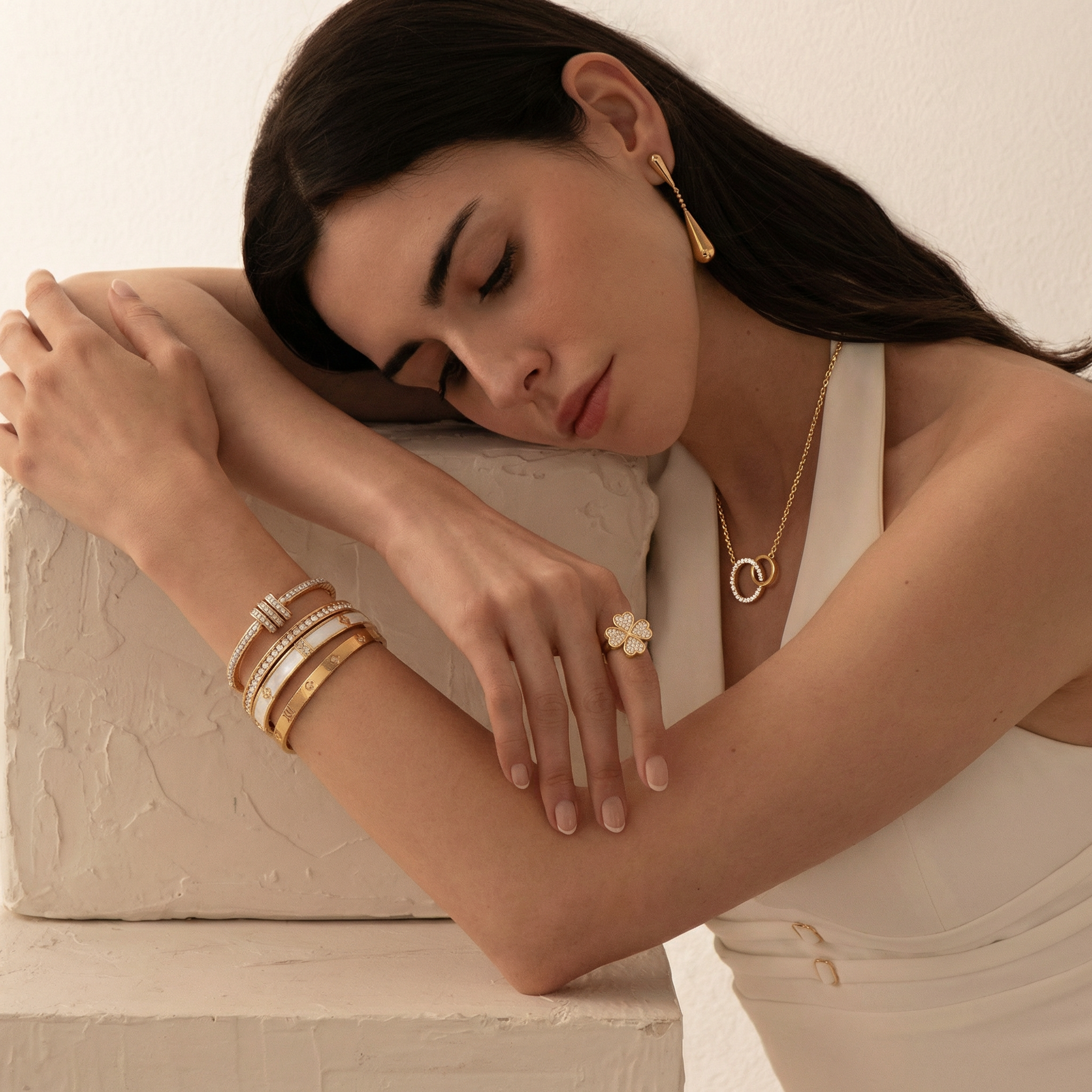 Alle sieraden zijn vervaardigd uit hoogwaardig roestvrij staal en of afgewerkt met een duurzame 18k gold plating of silver plating. De materialen zijn zorgvuldig geselecteerd voor langdurige kwaliteit, draagcomfort en een verfijnde uitstraling.